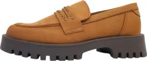 Damen Loafer mit Absatz mit Plateausohle Vegan, Braun (Cognac), 40 EU