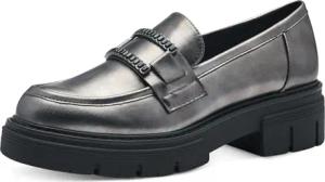 Damen Loafer ohne Absatz Vegan mit Plateau, Silber (Pewter), 38 EU