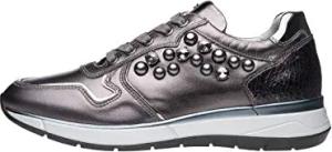 Sneaker Donna NeroGiardini in camoscio e Pelle Melenzana Con Lacci e Borchiette A909043D. Scarpa Platform dal Design Raffinato. Collezione Autunno Inverno 2019 2020. EU 38