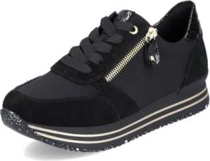 Damen Sneaker R1437, Frauen Schnürschuhe,lose Einlage,wasserabweisend,remonteTEX,straßenschuhe,Strassenschuhe,schwarz Kombi (01),38 EU