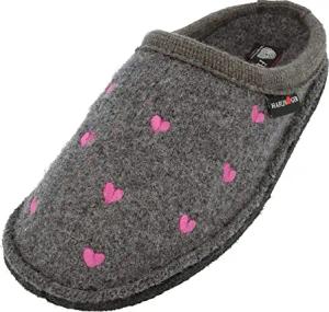 Flair Valentine Pantoffeln Hausschuhe Walkstoff Herzmotiv Anthrazit, Gr. 37