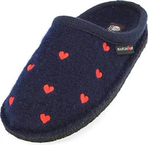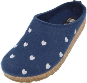 Flair Valentine Pantoffeln Hausschuhe Walkstoff Herzmotiv Mittelblau, Gr. 41