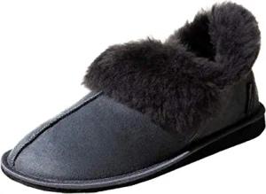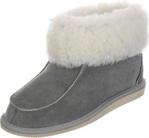 Damen & Herren Lammfell Hausschuhe Kanada Grau Fellschuhe Lederschuhe warme Schuhe aus Merino Schaffell & Echtleder Schuhgröße 39