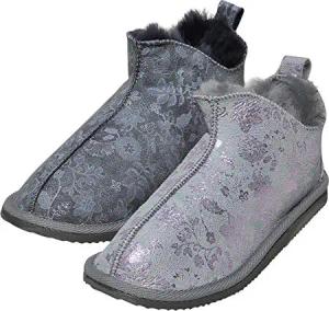 Damen Lammfell Hausschuhe Angel Fellschuhe Halbschuhe echtes Merino Schaffell weich bequem kuschelig Echtleder Schuhgröße 37, Farbe Grau