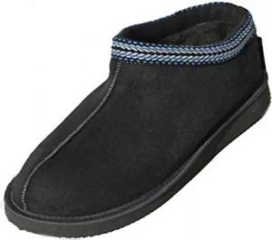 Herren Lammfell Hausschuhe Prinz Fellschuhe 100% Merino Schaffell für Wohlgefühl - warm, atmungsaktiv Schuhgröße EUR 43, Farbe Grau/Weiß