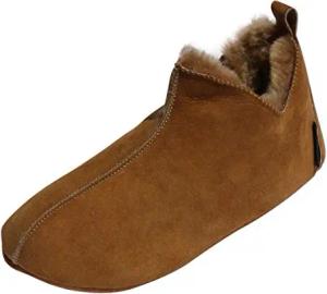 Leather Lammfell Hausschuhe Emil Premium Herren Fellschuhe aus 100% Merino Schaffell, Braun, 43 EU