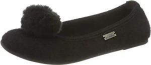 Ballerina mit Kunstfellbommel Hausschuh, Schwarz, 29 EU