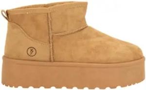 Camel-Stiefel für Damen mit 4 cm Plateau und Kunstfell-Futter, Camel, 37 EU