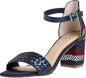 Damen Sandalen mit Absatz mit Schnalle Bequem, Blau (Navy Comb), 41 EU