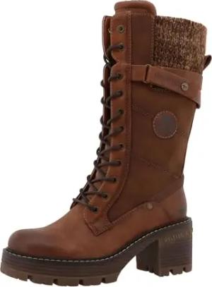 Damen Stiefel mit Blockabsatz und Schaftlasche 15M0132005, Größe:38 EU, Farbe:Braun