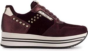 Sneaker Donna NeroGiardini in camoscio e Pelle Melenzana Con Lacci e Borchiette A909043D. Scarpa Platform dal Design Raffinato. Collezione Autunno Inverno 2019 2020. EU 38