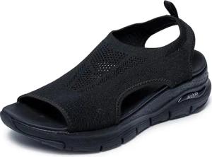 Damen Go Walk Flex Sandale, Textil Schwarz, 42 EU