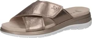 Comfort Damen Pantoletten aus Leder mit Klettverschluss, Beige (Taupe Metallic), 39 EU