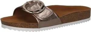 Damen Pantoletten aus Leder mit Schließe, Beige (Taupe Metallic), 37 EU
