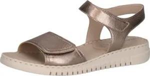 Damen Sandalen flach aus Leder mit Klettverschluss, Beige (Taupe Metallic), 37 EU