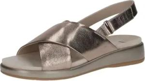 Damen Sandalen flach aus Leder mit Klettverschluss, Beige (Taupe Metallic), 38 EU