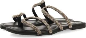 Damen Juwel Flache Sandale, Schwarz, 37 EU