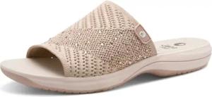 Damen Pantoletten mit Glitzersteinen Vegan, Beige (Beige), 42 EU