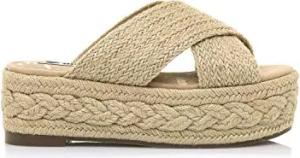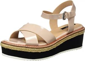 Damen Virginia Flache Plateau-Sandalen, Beige, Patent, Hautfarben, 37 EU