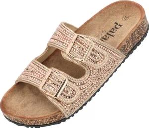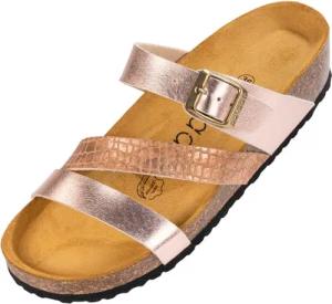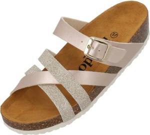 Pantoletten Damen Cres Metallic - elegante Sandalen Made in Spain - bequeme Hausschuhe mit dämpfendem Kork-Fußbett - modische Sommerschuhe Rose UK6 - EU39