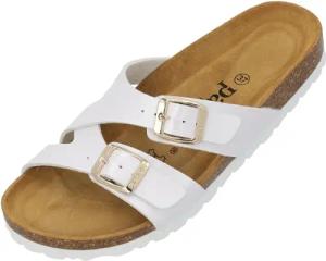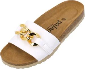 Pantoletten Damen Gozo - bequeme Sandalen Made in Spain - Hausschuhe mit dämpfendem Kork-Fußbett - modische Sommerschuhe weiß UK6 - EU39