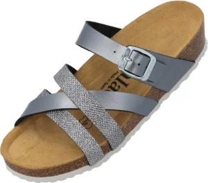 Pantoletten Damen Balmur - modische Sandalen Made in Spain - Hausschuhe mit Kork-Fußbett - bequeme Sommerschuhe Anthrazit Metallic UK7 - EU40