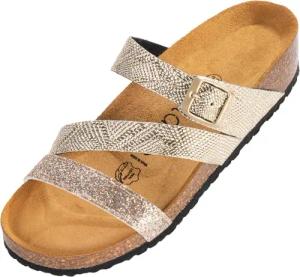 Pantolette Damen Lerima by Sila Sahin – bequeme Sandale Made in Spain - Hausschuhe mit Kork-Fußbett - modische Sommerschuhe Gold Metallic UK6 - EU39