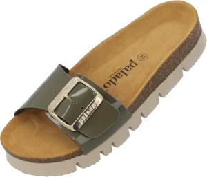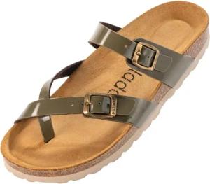 Pantoletten Damen Cres Lack – bequeme Sandalen Made in Spain - Hausschuhe mit dampfendem Kork-Fußbett - modische Sommerschuhe Olive UK3,5 - EU36