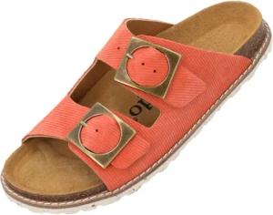 Pantoletten Damen Malta EGS Disco by Sila Sahin - elegante Sandalen Made in Spain - Hausschuhe mit Kork-Fußbett - bequeme Sommerschuhe Orange UK3,5 - EU36