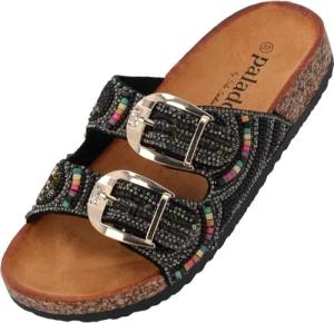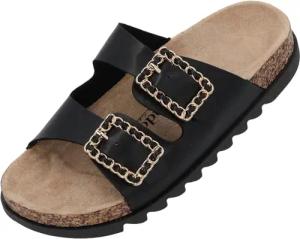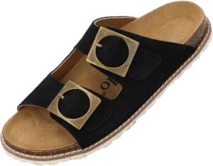 Pantoletten Damen Samos Glint by Sila Sahin - bequeme Sandalen Made in Spain - Hausschuhe mit Kork-Fußbett - modische Sommerschuhe Schwarz UK4,5 - EU37
