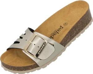 Pantoletten Damen Balmur - modische Sandalen Made in Spain - Hausschuhe mit Kork-Fußbett - bequeme Sommerschuhe Beige Metallic UK8 - EU41