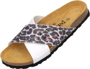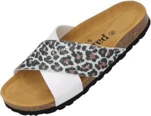 Pantoletten Damen Rianel Wild by Sila Sahin - elegante Sandalen Made in Spain - bequeme Hausschuhe mit Kork-Fußbett - modische Sommerschuhe Weiß Leo UK3,5 - EU36