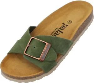 Pantoletten Damen Malta Matt – gefertigt in Spanien – Veloursleder-Decksohle – matte Oberfläche – Weichfußbett für besten Komfort Grün UK9 - EU42