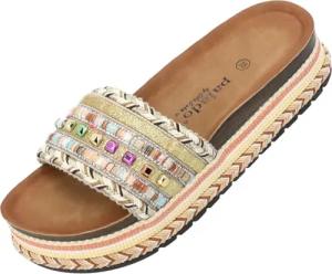 Pantoletten Damen Vaphine by Sila Sahin - bequeme Sandalen mit Plateau-Sohle - elegante Hausschuhe - modische Sommerschuhe Gold UK3,5 - EU36