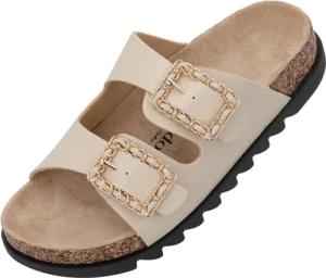 Pantoletten Damen Malta EGS Stardust by Sila Sahin - bequeme Sandalen Made in Spain - Hausschuhe mit Kork-Fußbett - modische Sommerschuhe Beige UK3,5 - EU36