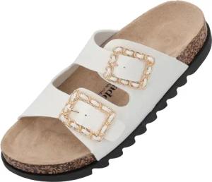 Pantoletten Damen Rianel Wild by Sila Sahin - elegante Sandalen Made in Spain - bequeme Hausschuhe mit Kork-Fußbett - modische Sommerschuhe Weiß Leo UK6 - EU39