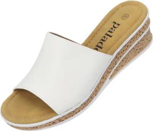 Sandalen Damen Niserios – modische Pantoletten im schlichten Design - bequeme Sommerschuhe - elegante Hausschuhe mit Keilabsatz Weiß UK6 - EU39