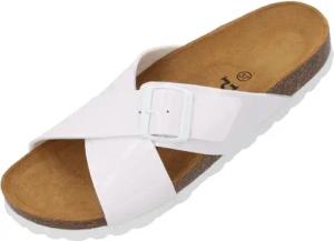 Sandalen Damen Vanelis - bequeme Sandaletten - modische Sommerschuhe - elegante Pantoletten Weiß Lack UK3,5 - EU36