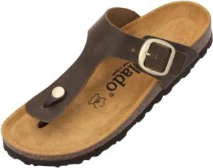 Zehentrenner Damen Kos Denka - bequeme Pantoletten Made in Spanien - elegante Sandalen mit Kork-Fußbett - modische Sommerschuhe Khaki/Dunkelbraun UK9 - EU42