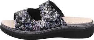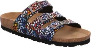 Pantolette "Alba" Sommerschuh, Schlappen, Hausschuh mit buntem Druck, G-Weite = weit