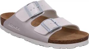 Damen Leder Pantoletten Leder-Tieffußbett Schnalle Alba 5589, Größe:41 EU, Farbe:Grau