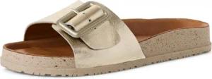 Comfort Damen Pantoletten mit Chunky-Sohle Vegan, Mehrfarbig (Beige/Gold), 36 EU