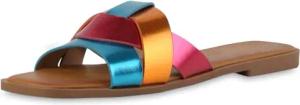 Damen Pantoletten Flach Basic Trendy Schuhe 217422 Mehrfarbig Metallic 36