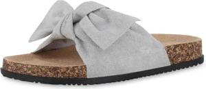Damen Pantoletten Flach Schleifen Bequem Schuhe 215907 Grau 37