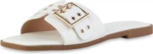Damen Pantoletten Flach Schnallen Trendy Schuhe 217411 Weiss 36