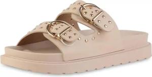 Damen Pantoletten Flach Schnallen Trendy Schuhe 217412 Nude 37