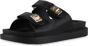 Damen Pantoffeln Flach Schnallen Bequem Schuhe 216920 Schwarz 36