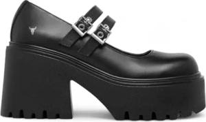 Damen Mary Jane Schuhe aus Schwarzem Leder mit Dicker Plateausohle
