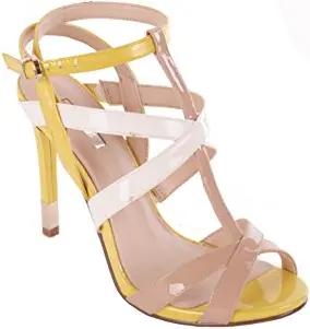 Damen Pumps Highheels Riemchensandalen (Beige/Gelb, EU Schuhgrößensystem, Erwachsene, Numerisch, Schmal, 35)