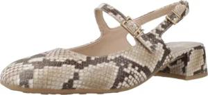 Damenschuh mit niedrigem Absatz, Leder, Schlangenprint, Taupe, für Damen, Taupe, 39 EU